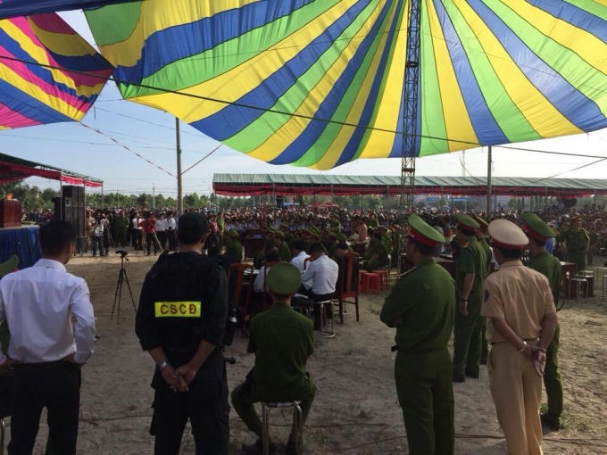 Đại diện phiên tòa cũng ra thông báo, hiện nay mốt số đối tượng lợi dụng đám đông móc túi trộm tài sản, vi phạm pháp luật đề nghị bà con nhân dân cảnh giác bảo vệ tài sản. Khi gặp sự cố người dân liên hệ ngay cảnh sát cơ động gần nhất để trình báo, xử lý.