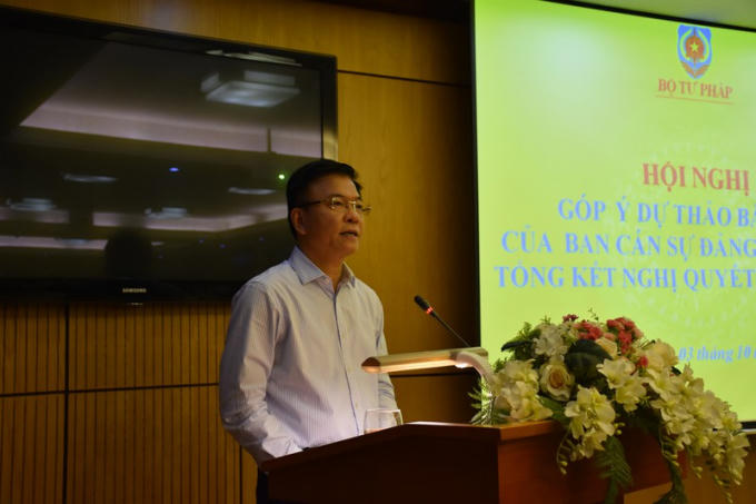 Sáng 3/10, Bộ Tư pháp tổ chức Hội nghị góp ý dự thảo Báo cáo của Ban Cán sự Đảng Chính phủ tổng kết Nghị quyết số 48-NQ/TW. Bí thư Ban Cán sự Đảng, Bộ trưởng Bộ Tư pháp Lê Thành Long chủ trì Hội nghị.