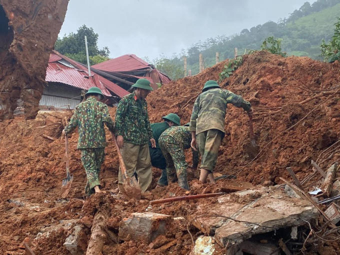 Tại đây có 27 cán bộ, chiến sĩ của Đoàn Kinh tế - Quốc phòng 337 đang thực hiện nhiệm vụ giúp dân khắc phục hậu quả mưa lũ. Tại thời điểm bị sạt lở, có 5 đồng chí may mắn thoát nạn, 22 cán bộ, chiến sĩ còn lại bị mất tích.