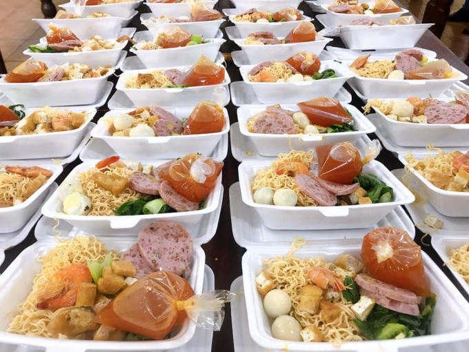 Những phần mì xào cải được chuẩn bị sạch sẽ, ngon lành gửi đến bà con khu cách ly tập trung.