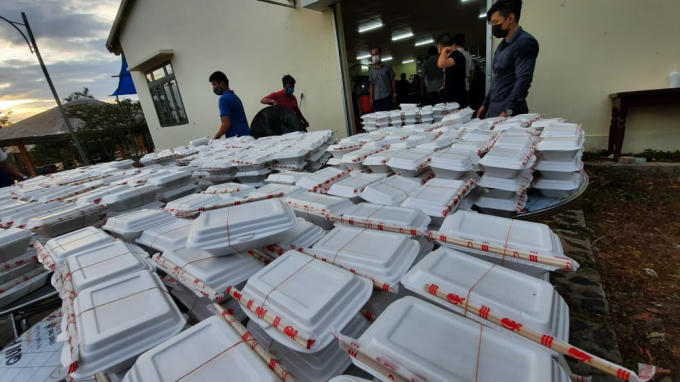 Khoảng 7h sáng, 1000 suất ăn đã được đóng hộp chuẩn bị lên đường vận chuyển.