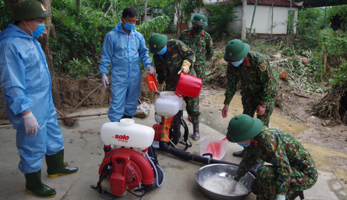 Hình ảnh Bộ đội điều động tối đa lực lượng giúp dân vùng lũ vệ sinh môi trường, tiêu độc khử trùng