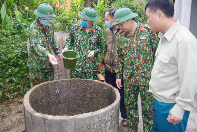 Bộ đội kiểm tra ngay nguồn nước sinh hoạt của các hộ dân, hướng dẫn phương án xử lý để đảm bảo vệ sinh.