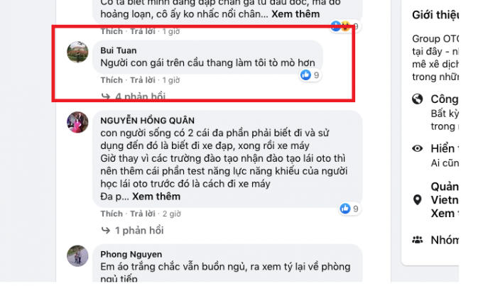 Nhiều bình luận tập trung vào phân tích hình ảnh cô gái đứng bình thản trên cầu thang khi chứng kiến sự việc.