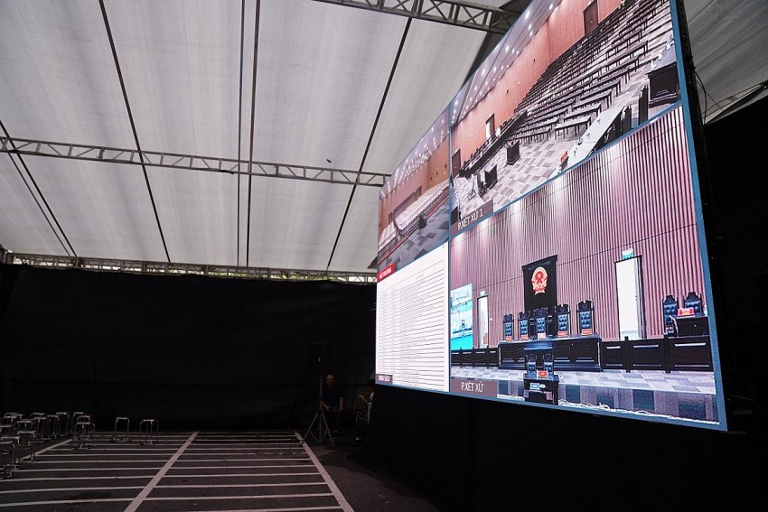 Ngoài khu vực phòng xét xử, Tòa án nhân dân TP.Hà Nội còn dựng một rạp lớn để các bị hại được triệu tập đến theo dõi phiên xét xử.