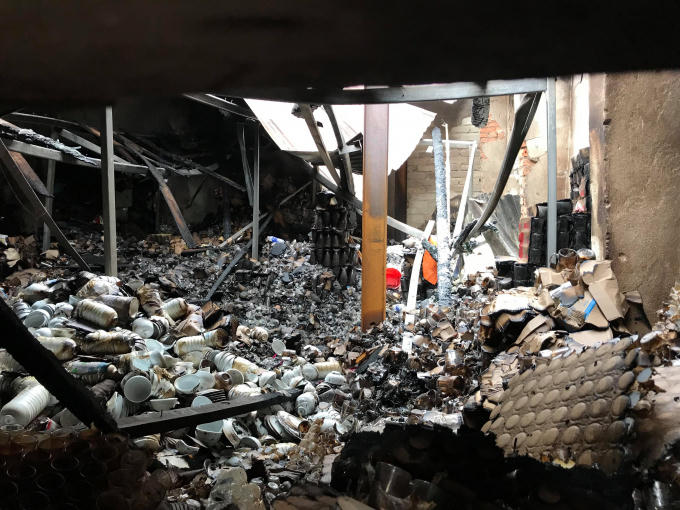 Ngọn lửa đã tàn phá kho chứa hàng rộng hơn 2000 m2 suốt nhiều giờ liền. Sau vụ hỏa hoạn khối lượng lớn hàng hóa bị biến thành than...