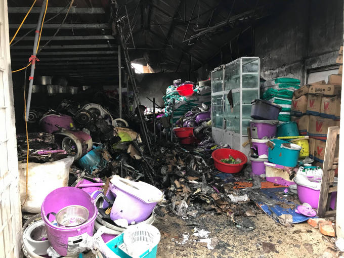Theo quan sát của phóng viên, phía trong hàng hóa bị thiêu thành than, phía trên các tấm tôn lợp cũng bị đổ sập xuống hư hỏng tạo nên một khung cảnh hoang tàn. Thậm chí, những hàng hóa làm bằng kim loại cũng bị sức nóng từ ngọn lửa làm biến dạng...