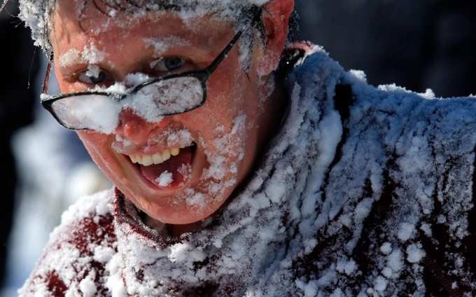 Người đàn ông thích thú, chơi đùa dưới tuyết. (Ảnh:Reuters)