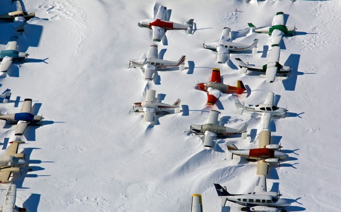 Sân bay trắng xóa màu tuyết. (Ảnh:AP)
