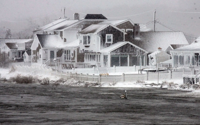 Nhà cửa bị tuyết phủ trắng xóa. (Ảnh: AP)