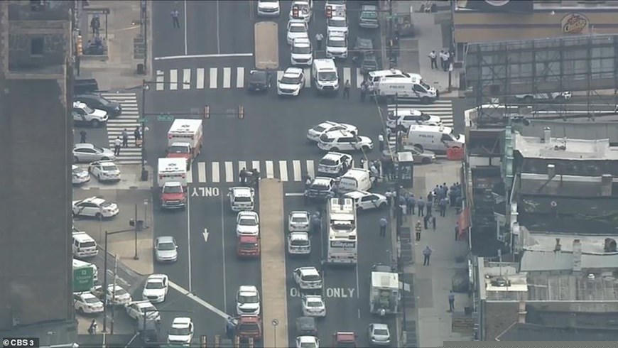 Khung cảnh hỗn loạn nơi xảy ra vụ đấu súng giữa lực lượng cảnh sát Mỹ và đối tượng có vũ trang tại khu vực Nicetown-Tioga, thành phố Philadelphia, bang Pennsylvania vào sáng 15/8. (Ảnh: vietnamplus.vn).
