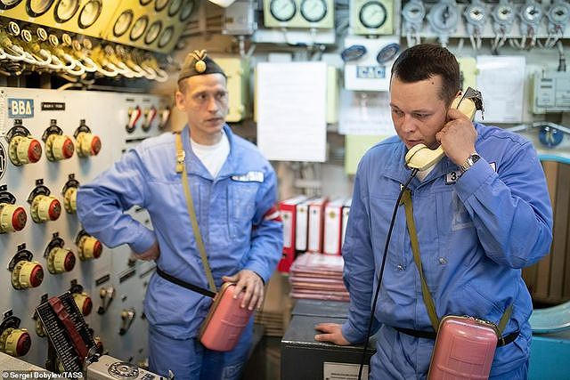 Các thủy thủ làm việc trên tàu ngầm Nga lớn nhất thế giới thuộc lớp Akula. (Ảnh: Tass).
