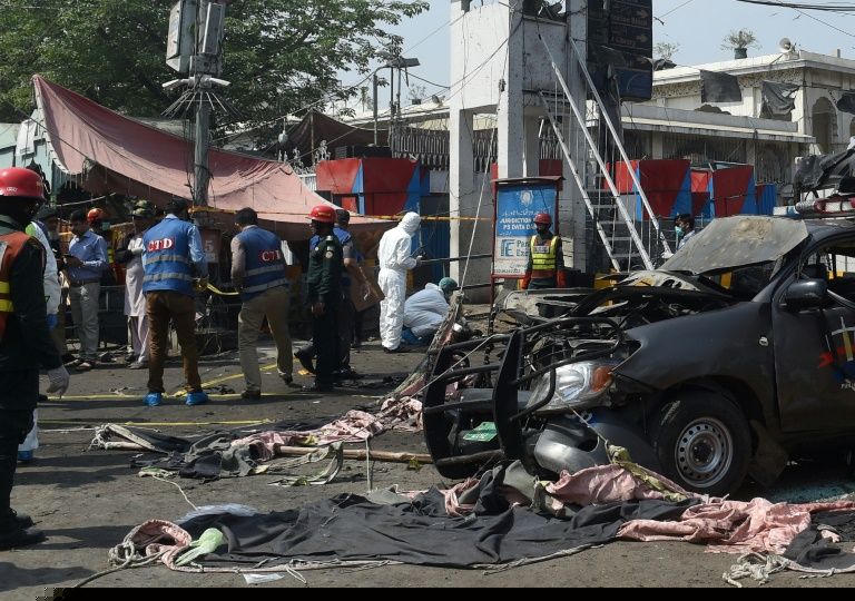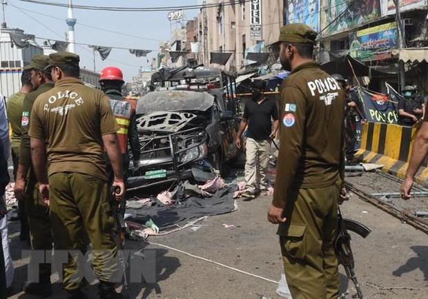 Một vụ nổ lớn xảy ra ngày 8/5 nhằm vào lực lượng cảnh sát gần ngôi đền Hồi giáo theo dòng Sufi ở thành phố Lahore thuộc miền Đông Bắc Pakistan, khiến ít nhất 5 người thiệt mạng và hàng chục người khác bị thương. Ảnh: AFP.