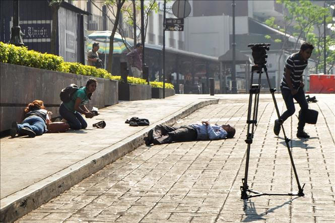 Ít nhất 2 lãnh đạo công đoàn thiệt mạng và 2 người bị thương khi một đối tượng nổ súng vào đám đông bên ngoài trụ sở cơ quan chính phủ ở quảng trường trung tâm tại Cuernavaca, thủ phủ bang Morelos, miền Trung Mexico, ngày 8/5. Ảnh: AFP/TTXVN.