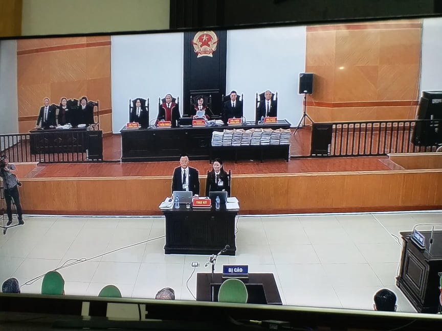 Hình ảnh HĐXX xét xử, được chụp qua màn hình tivi.