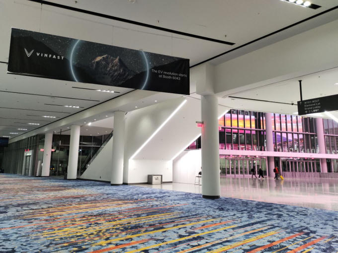 Hiện tại, hình ảnh VinFast với biểu tượng chữ V quen thuộc đã tràn ngập tại Trung tâm Triển lãm và Hội nghị Las Vegas (Nevada, Mỹ) - nơi diễn ra sự kiện.