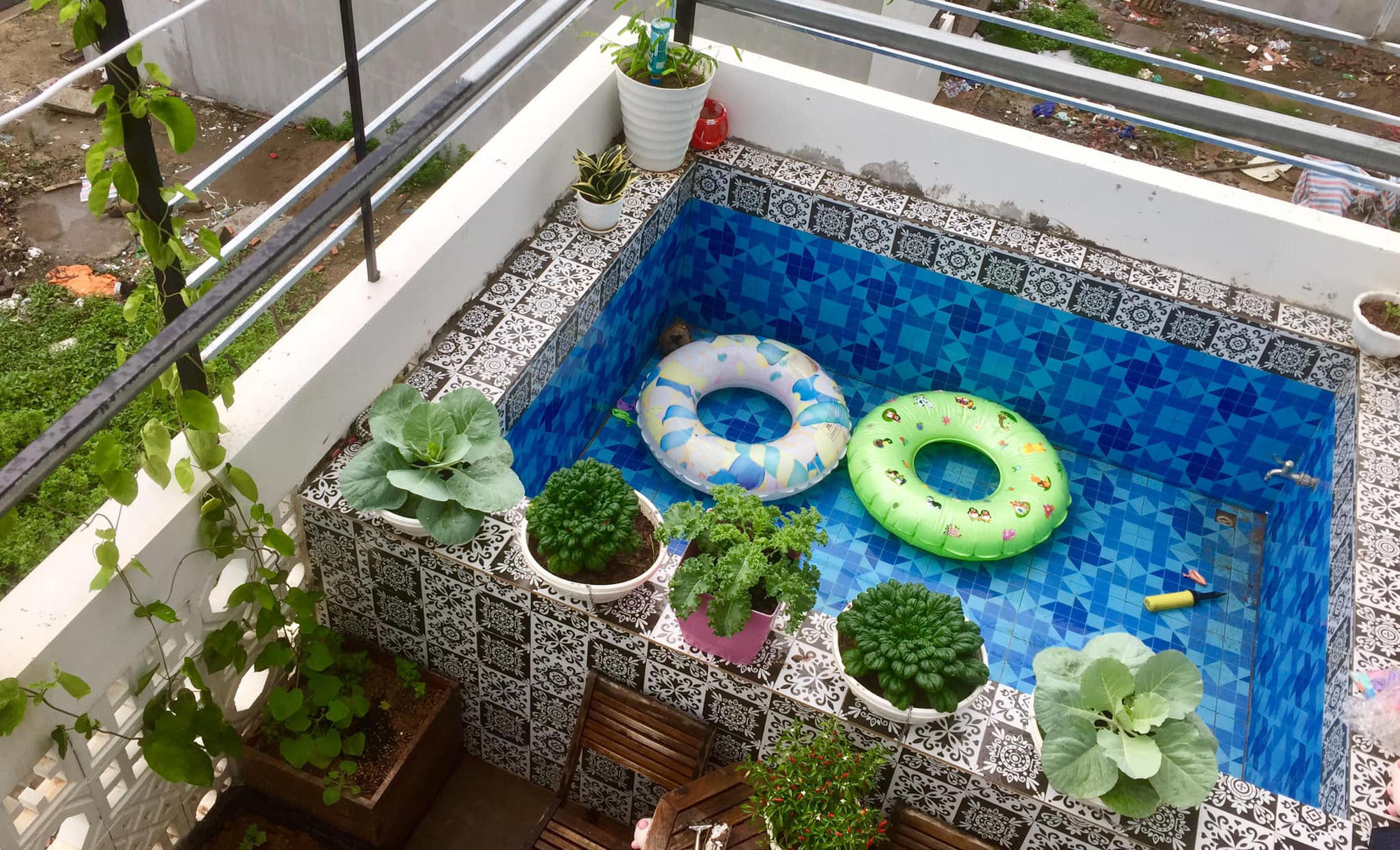 Bể bơi ở sân thượng tầng 4