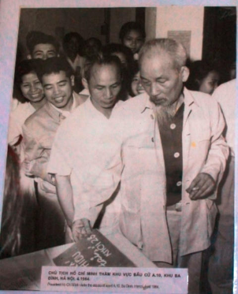 Bác Hồ thăm khu vực bầu cử A.10, khu Ba Đình, Hà Nội tháng 4 năm 1964. Ảnh tư liệu