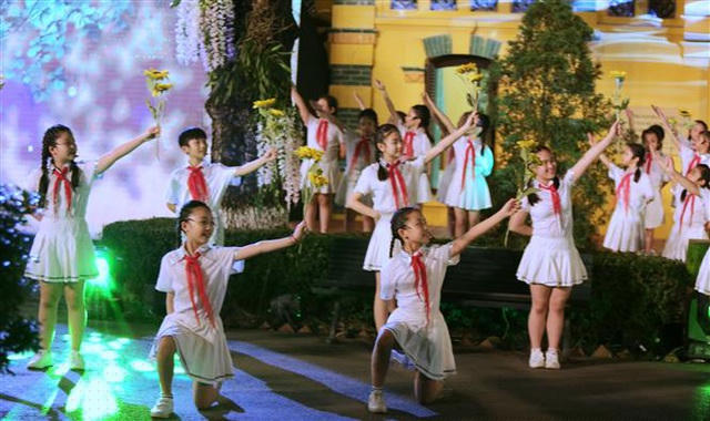 Tiết mục hát múa "Mong Bác vô Nam" do thiếu nhi Đồng Tháp thực hiện