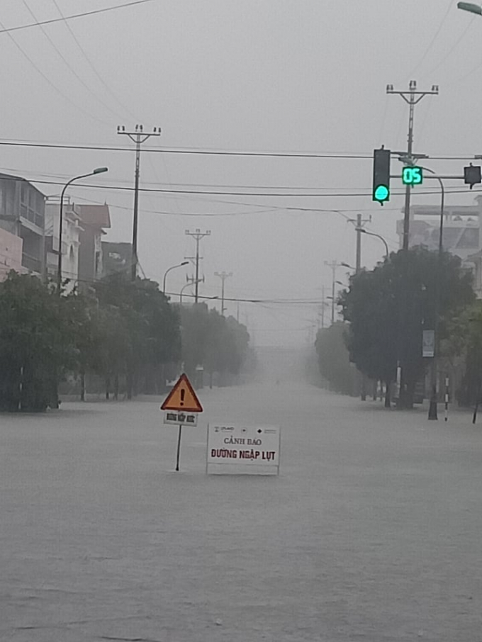 Mưa lớn kèm với việc xả tràn đã gây ngập úng trên các tuyến đường Thành phố Hà Tĩnh với mực nước ngập có nơi gần 1m.