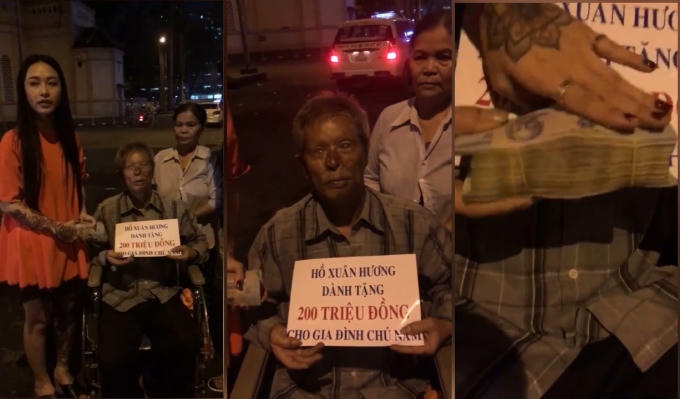 Cụ thể, ngày 13/10, trên trang facebook cá nhân của mình, Facebooker Hồ Xuân Hương chia sẻ một đoạn clip ngắn ghi lại quá trình từ thiện của mình với gia đình một người cao tuổi được cho là bị tai nạn cách đây 12 năm. Với di chứng thương tật 80%, mất 2 mắt, gương mặt bị hủy hoại và phải ngồi xe lăn.