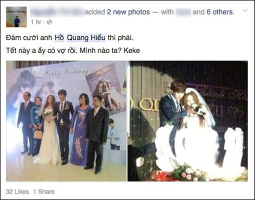 Mới đây, cộng đồng mạng bất ngờ chia sẻ những hình ảnh về đám cưới của một cặp đôi, mà nhân vật chính không ai khác chính là chàng ca sỹ điển trai Hồ Quang Hiếu.