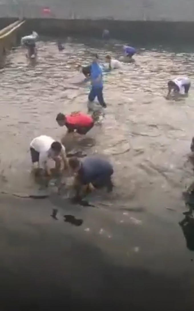Clip ghi lại hình ảnh nhiều người tụ tập, hò reo bắt cá. (nguồn Bắc Giang News).