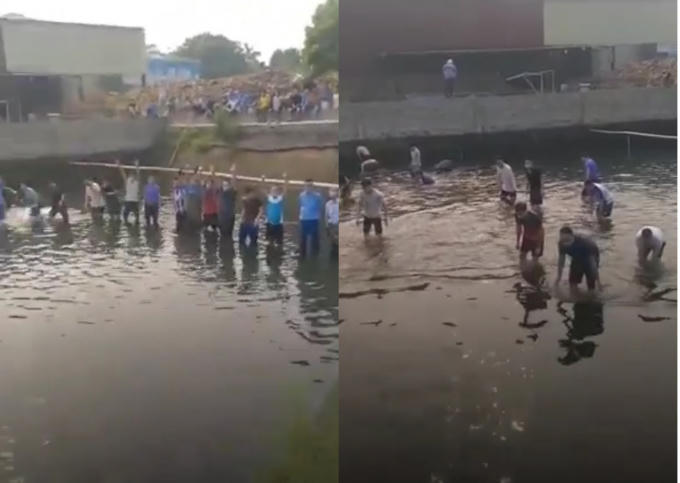 Như Pháp luật Plus đã phản ánh trước đó, ngày 6/6 tại Nhà máy giấy Xương Giang có rất nhiều người đứng xếp hàng, giơ hai tay lên ngay ngắn, sau khi có tiếng rung chuông, đồng loạt tất cả đều tiến hành bắt cá bằng tay.
