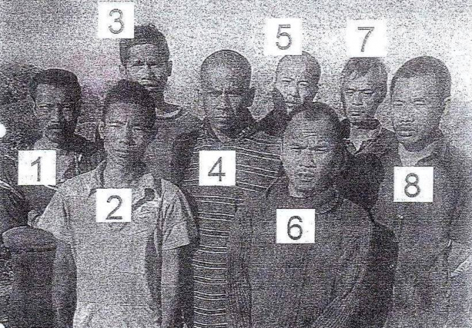 | Thuyền viên Hạ (số 1) Xuân (số 6) và Phương (số 2) cùng các thuyền viên khác khi bị cướp biển Somali bắt giữ. |