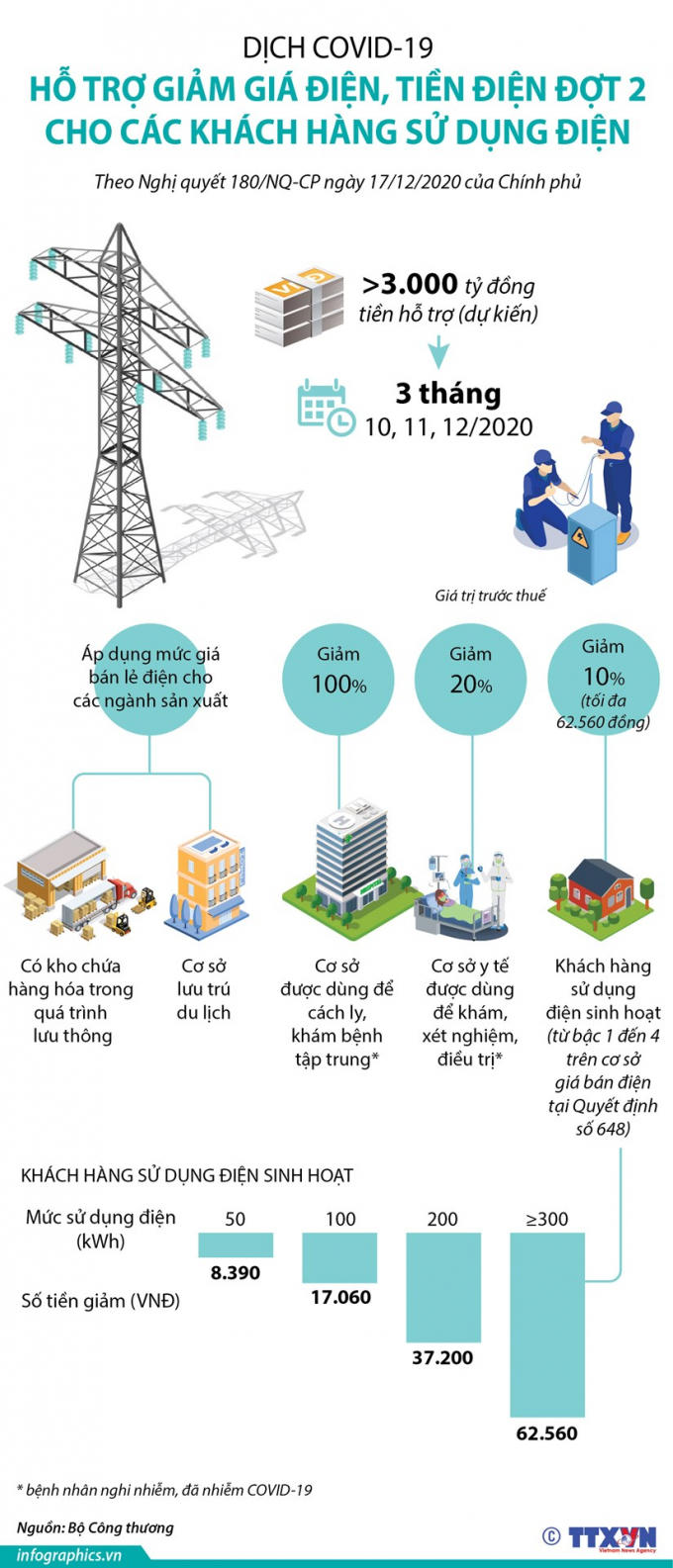 Ngày 17/12, Chính phủ ban hành Nghị quyết 180/NQ-CP về phương án hỗ trợ giảm giá điện, giảm tiền điện (đợt 2) cho các khách hàng sử dụng điện do ảnh hưởng hưởng của dịch COVID-19.
