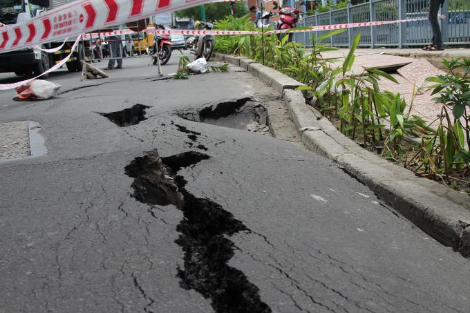 Theo những người dân, 3h sáng cùng ngày vết nứt đã xuất hiện. Tới sáng thì bị sụp luôn nên tạo ra cái hố to. Rất may vụ việc xảy ra vào thời điểm sáng sớm, ít xe cộ qua lại nên không có thương vong về người