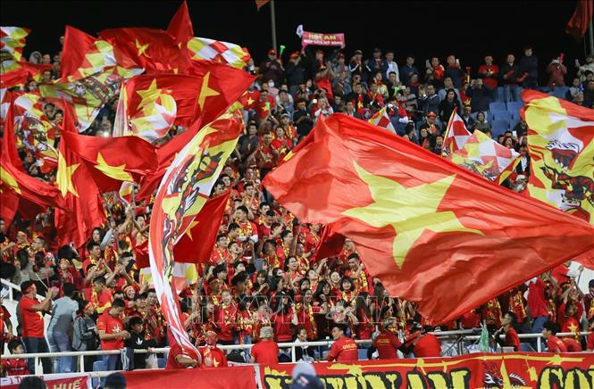 Sắc đỏ của CĐV Việt Nam đã nhuộm đỏ những khán đài sân Mỹ Đình là nguồn cổ vũ mạnh mẽ tiếp sức cho đội tuyển Việt Nam. Ảnh: Trọng Đạt/TTXVN.