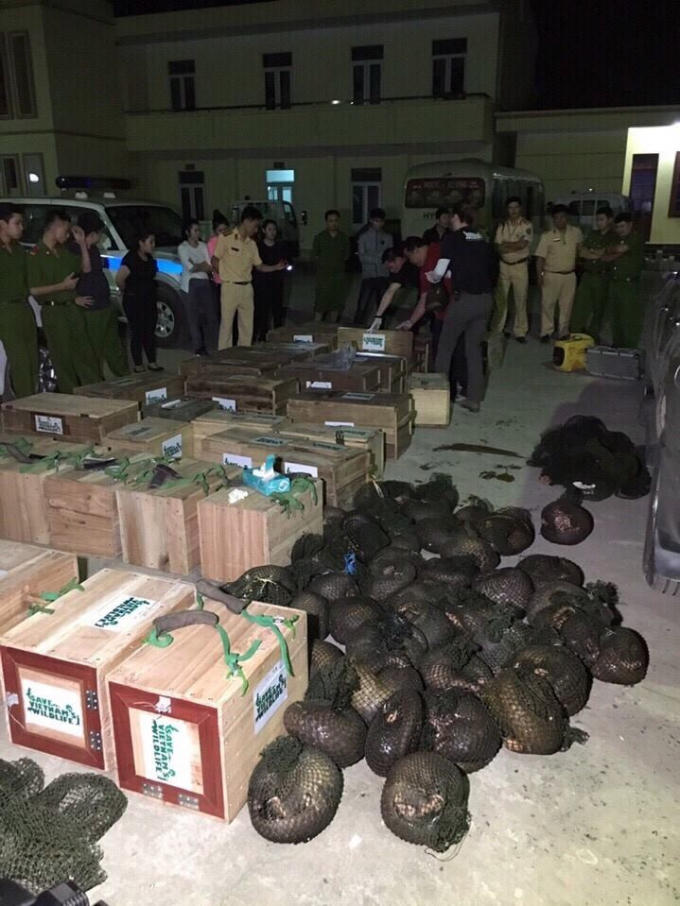 Ngay sau đó, Tổ tuần tra CSGT đường Hồ Chính Minh đã phối với Công an huyện Yên Thuỷ; Phòng PC44, PC45, Kiểm Lâm, Trung tâm nghiên cứu và bảo tồn động vật hoang dã vườn quốc gia Cúc Phương đã tiến hành kiểm đếm hàng hoá trên xe ô tô BKS 29A-168.06. Qua kiểm đếm có 118 cá thể tê tê với tổng khối lượng: 556 kg.
