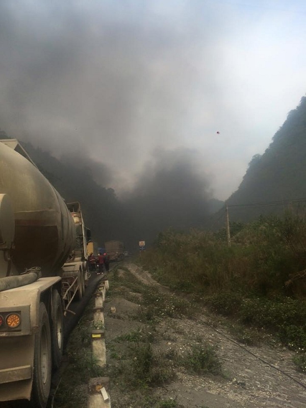 | Cột khói nghi ngút bốc nên từ vụ tai nạn. Nguồn: Otofun. |