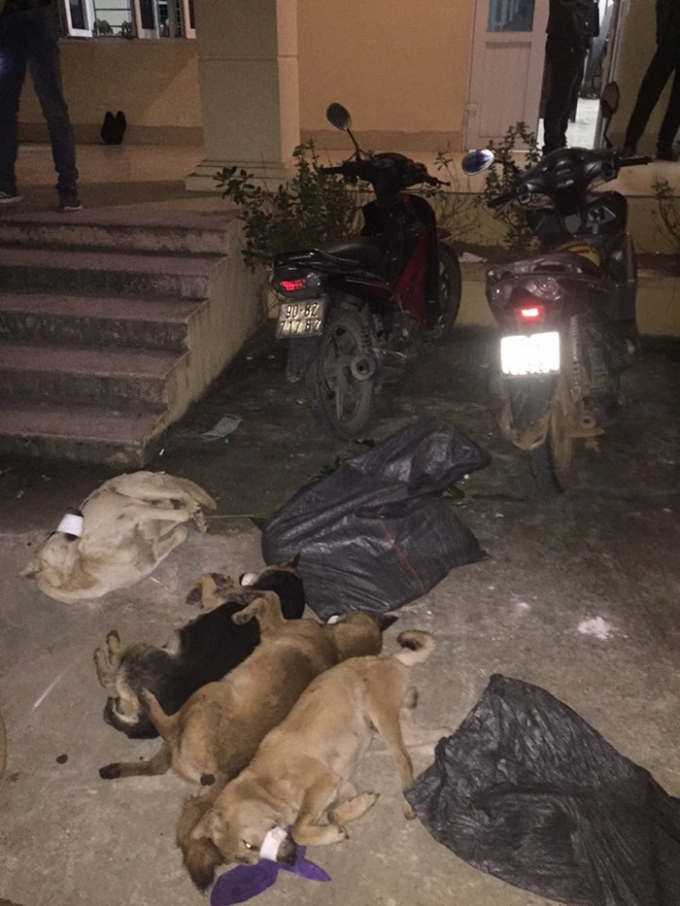 Sau khi nhận được tin báo, lực lượng công an xã đã có mặt và phát hiện 4 đối tượng đi trên 2 xe máy có nhiều dấu hiệu khả nghỉ. Lúc này khi thấy lực lượng công an, các đối tượng đã bỏ chạy khoảng 1km sau đó vứt lại xe máy và chó để chạy vào rừng keo (địa phận giáp ranh thôn Quyết Tiến và Thôn Vai).
