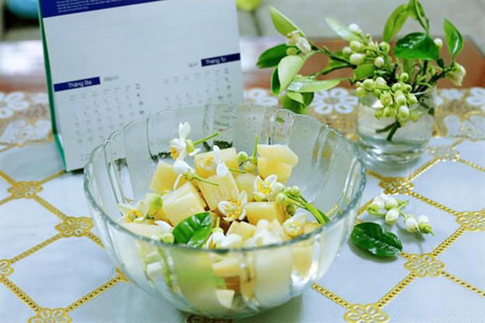 Người Hà Nội vẫn thường có thói quen mua hoa bưởi về thắp hương, nấu chè.