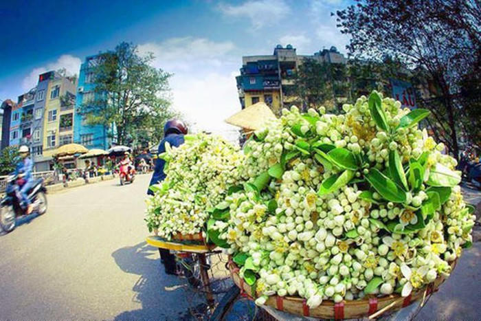 Xe hàng rong chở hoa bưởi làm nên nét riêng cho Hà Nội.