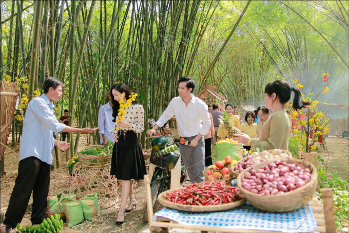 Gần 100 diễn viên quần chúng đã cùng nhau mang lại không khí những ngày cuối năm với những gian hàng bán thịt, bán bánh mứt, các loại trái cây và hoa tươi ngày Tết. MV toát lên sự tươi tắn rạng ngời với những chậu hoa cúc vàng, hoa mai rực rỡ, quầy dưa hấu, quầy mứt cùng những lời chào mời mua hàng ồn ào, náo nhiệt.