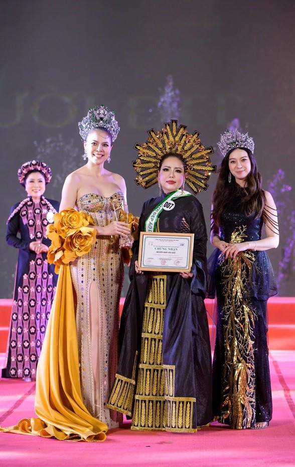 Bên cạnh giải thưởng Hoa hậu đại sứ Doanh nhân Hoàn vũ Việt Nam, doanh nhân Lê Thùy còn nhận được giải thưởng phụ Người đẹp áo dài.