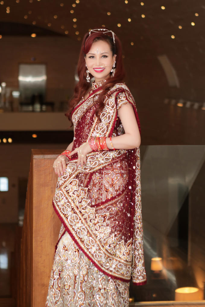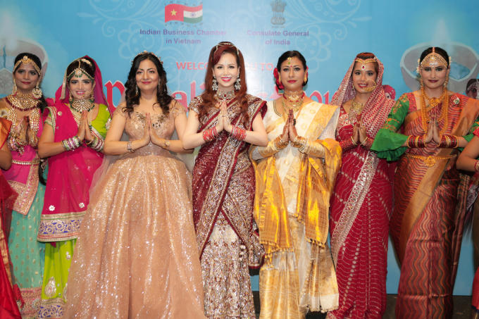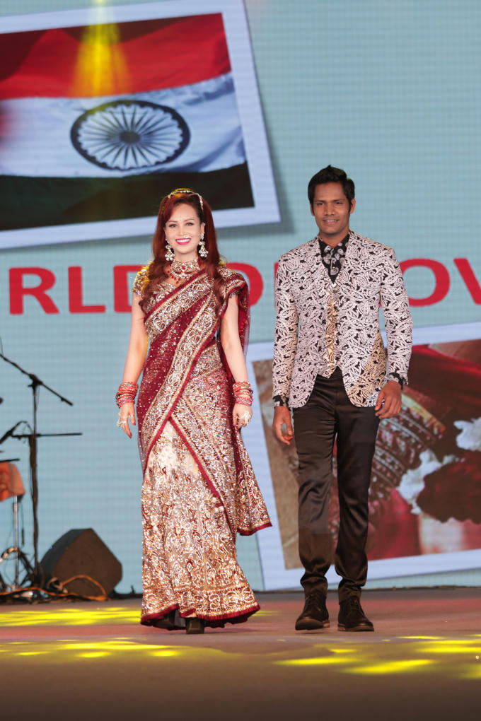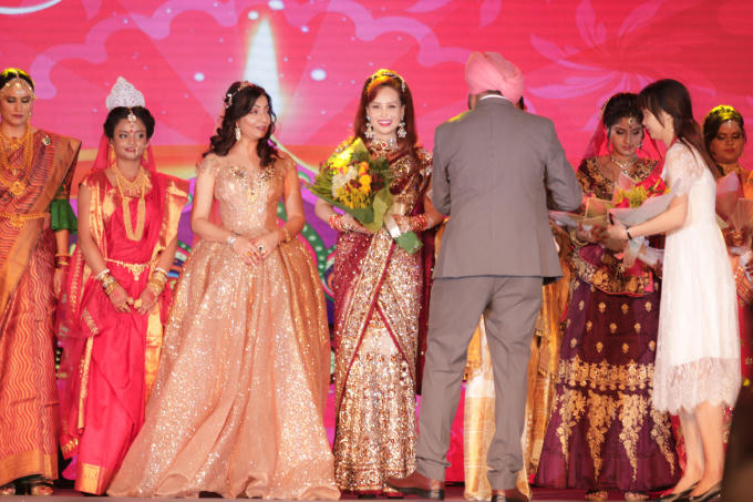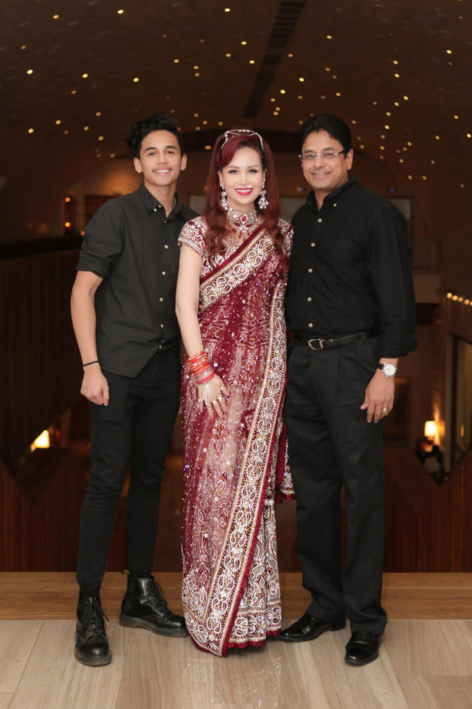 Hoa hậu Diệu Hoa được chồng và con trai út tháp tùng trình diễn thời trang tại Lễ hội Diwali