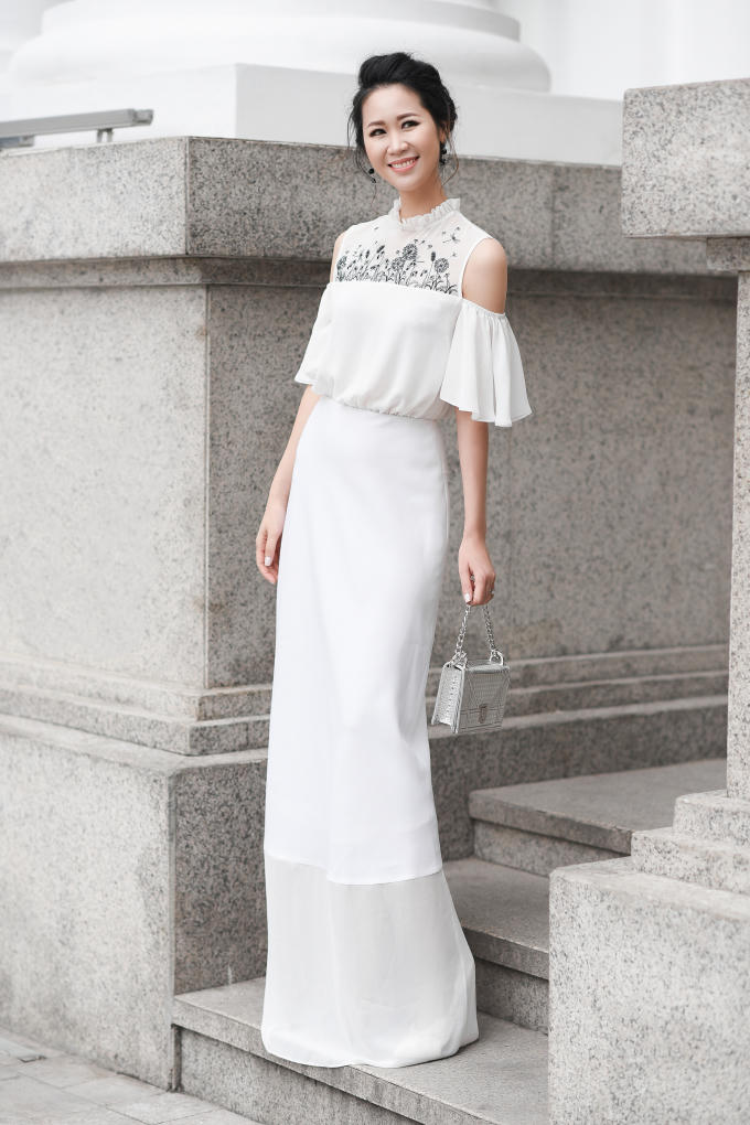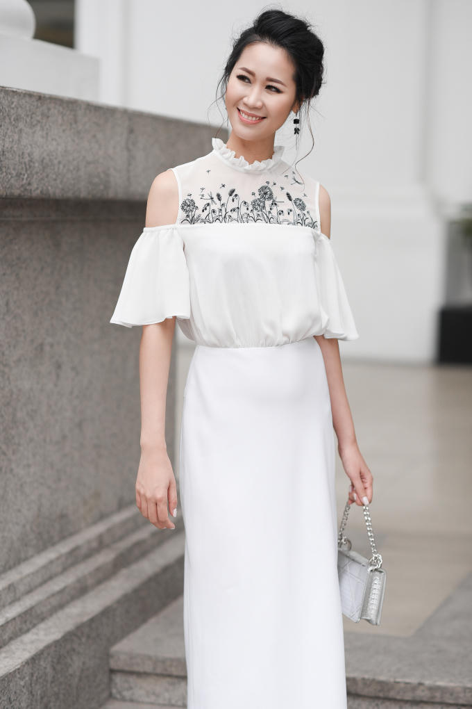 Mới đây, Hoa hậu Thân thiện của Hoa hậu Hoàn vũ Việt Nam 2008 đã thực hiện bộ ảnh street style, gợi ý 5 set đồ tông trắng dành cho phái đẹp. Đây là những mẫu trang phục nằm trong bộ sưu tập 'A Story Told By Hands' (Câu chuyện kể bằng đôi tay) của NTK Xuân Lê.