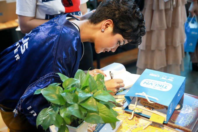 Bắt đầu chương trình, Hoa hậu H’Hen Niê chủ động cầm micro kêu gọi mọi người đến tham quan gian sách của mình, ký tặng và vui vẻ chụp ảnh cùng người hâm mộ. Cô còn “nhiệt tình” giới thiệu các đầu sách hay giúp mọi người có nhiều sự lựa chọn hơn.