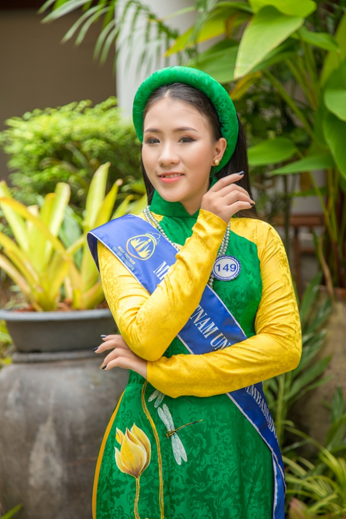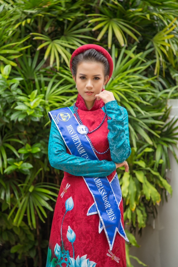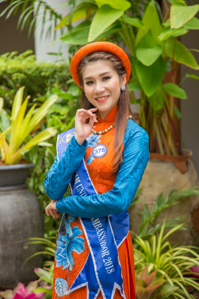 Những trang phục áo dài này nằm trong bộ sưu tập mang tên “Khúc Hoài Niệm” của NTK Thiệu Vy dành riêng cho chương trình Hoa hậu Đại sứ Hoàn vũ 2018.