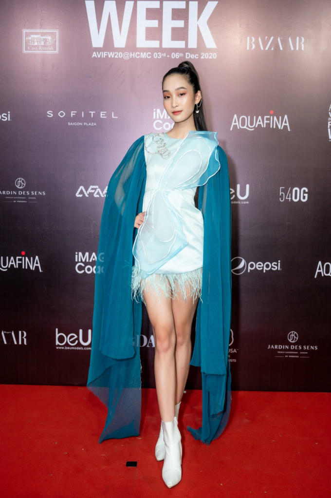 Á hậu Kiều Loan - ca sĩ Yuky San - Đặng Dương Thanh Thanh Huyền gợi cảm với thiết kế tông xanh pastel mát mắt, như những áng mây bồng bềnh.