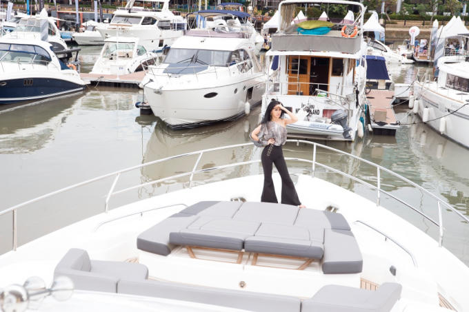 Hoa hậu Loan Vương thả dáng bên du thuyền triệu đô ở Singapore