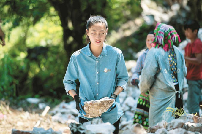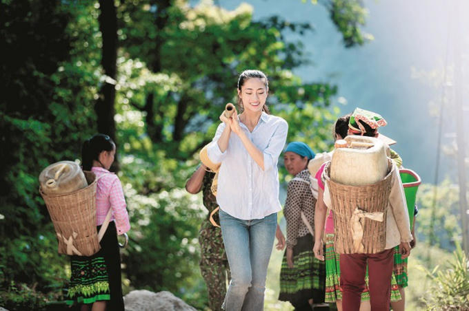 Hình ảnh Lương Thùy Linh khi thực hiện dự án nhân ái “Đắp đường, xây ước mơ”