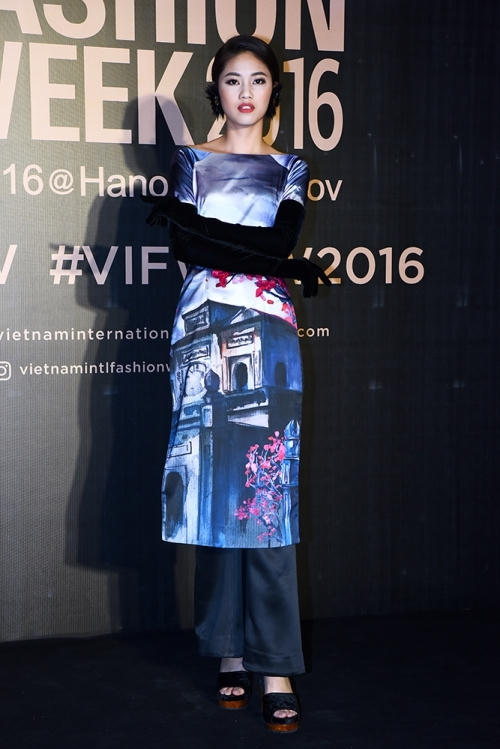 Người đẹp gây chú ý với gu thời trang khác lạ khi đi xem show thời trang tại Hà Nội tối 3/11.