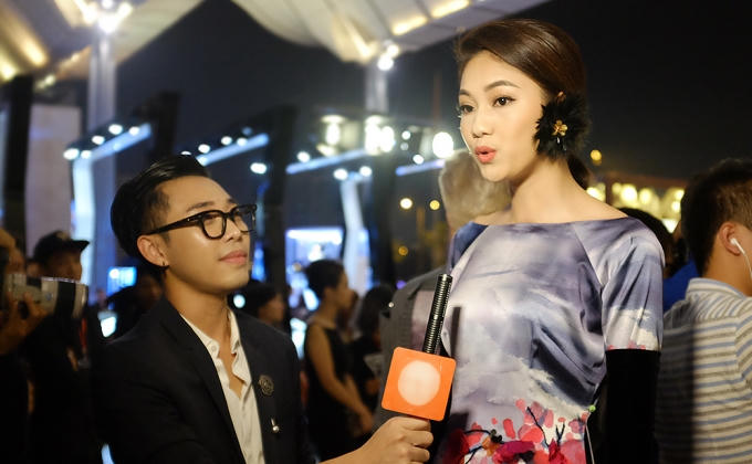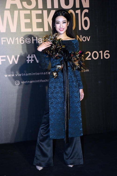 Hoa hậu Mỹ Linh quàng khăn lông gà lên thảm đỏ