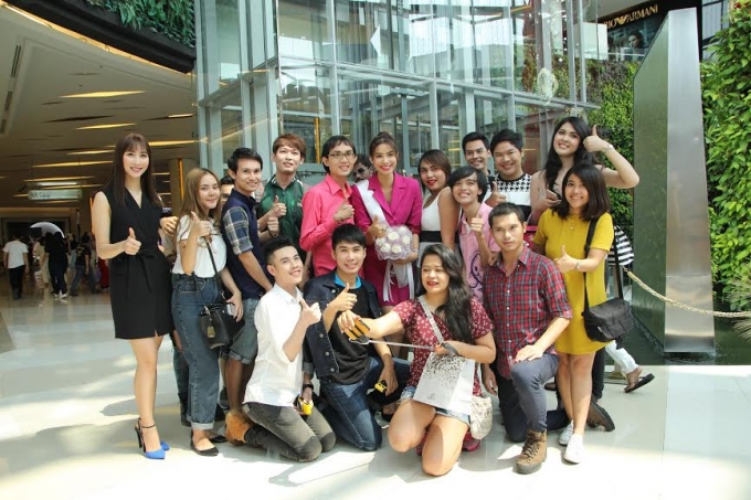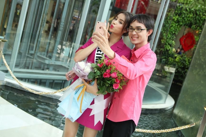 | Phạm Hương chụp ảnh cùng fan hâm mộ Thái Lan |