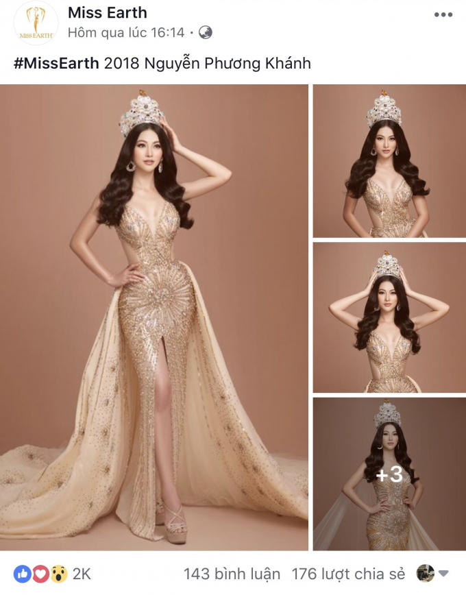 Vừa qua (5/6), trên fanpage Miss Earth đã bất ngờ đăng tải bộ ảnh kỉ niệm của Hoa hậu Trái đất Phương Khánh cùng vương miện vô cùng đắt giá.